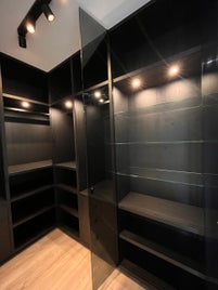 Luxe inloopkast met verlichting en glas